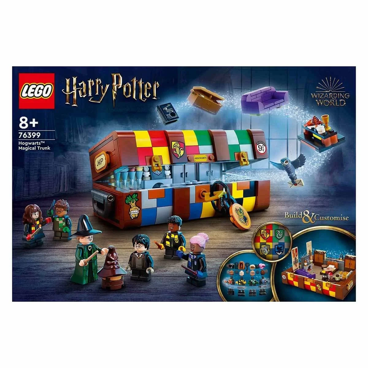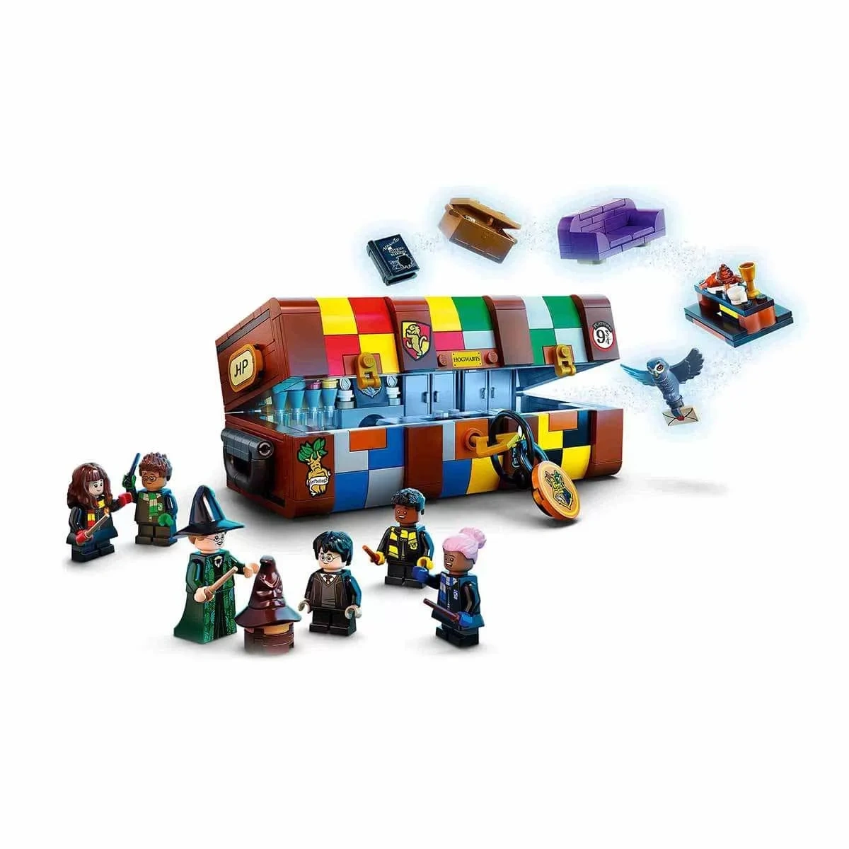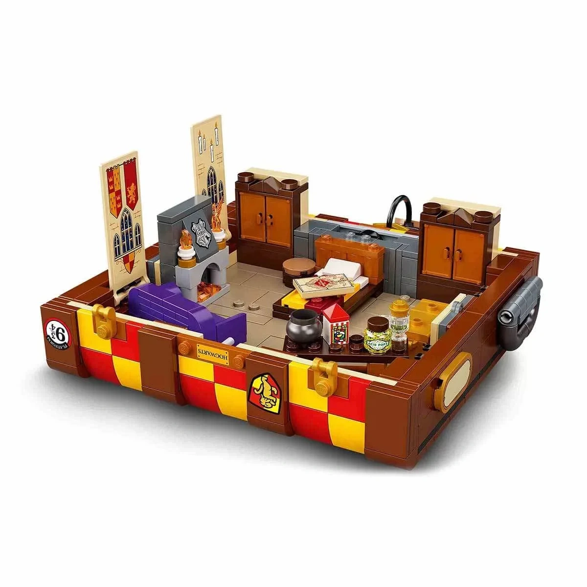 Hogwarts eğlencesini çocukların ellerine verin; Tıpkı Hogwarts öğrencilerinin tipik bavulları gibi olan bu bavula çocuklar farklı Hogwarts bina renklerini ve eğlenceli çıkartmaları ekleyerek bu LEGO versiyonunu kendilerine özgü hale getirebilirler. İçeriğinde farklı saçlar ve çeşitli renk tonları dahil geniş bir mini figür parçaları koleksiyonu bulunur, böylece çocuklar Harry Potter filmlerinden 5 karaktere kadar oluşturabilir ve kendi yeni Hogwarts öğrencilerini tasarlayabilir. Filmden çok çeşitli kişiselleştirilebilir mobilyalar ve aksesuarlar, çocuklara hayali Hogwarts maceralarını gerçek hayata taşımaları için ilham verici fikirler verir. Ayrıca canlandırmak için filmden 3 klasik hikaye içerir: Seçme töreni, büyük salon ziyafeti ve ortak salon. Aksiyon bittiğinde her şey derli toplu bir şekilde bavula sığar, böylece çocuklar Hogwarts büyüsünü gittikleri her yere götürebilir.