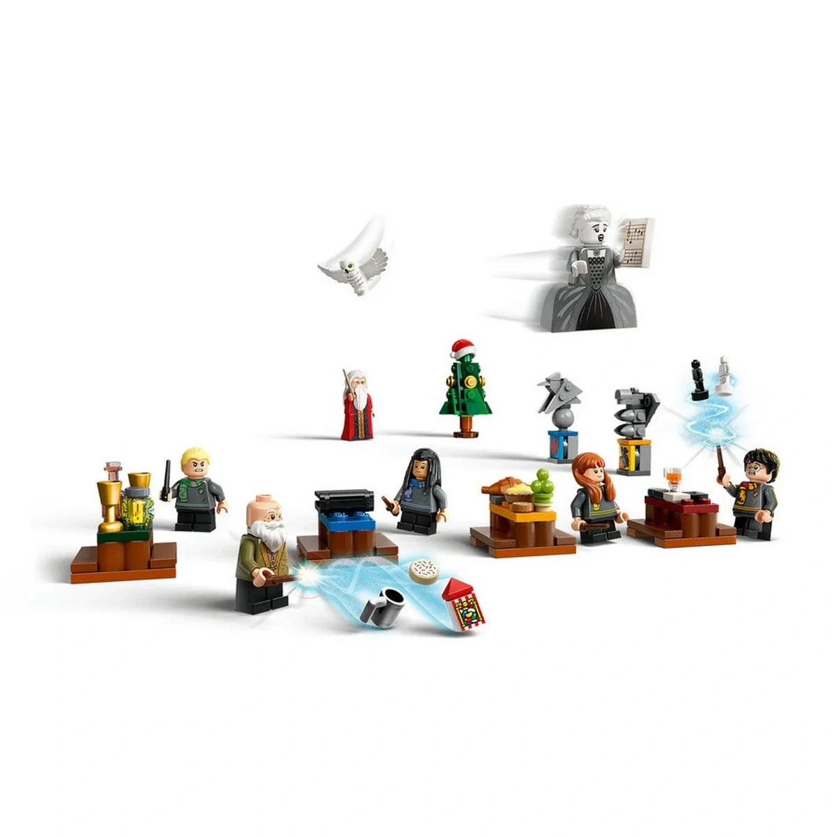 Ayrıca 14 koleksiyonluk Hogwarts portresinden 2’si, yılbaşı ağacı, yılbaşı şekeri, Hogwarts Ekspresi treni ve daha fazlası var.