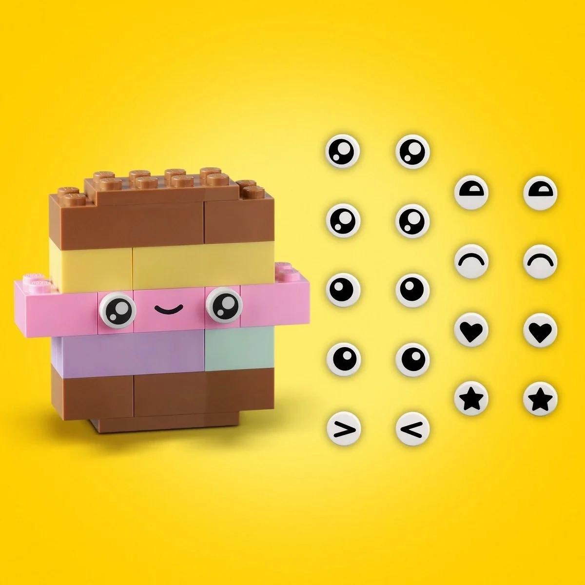 Çarpıcı pastel tonlarındaki bu ilham verici yapım parçalarıyla çocukların yaratıcı yapımlarına neşe ve canlılık katın. Modelleri canlandırmak için 18 adet ifadeli göz yapım parçasını kullanarak bulut, dondurma, dinozor, kedi ve robottan oluşan yapımı kolay 5 modelle başlayın. Sonra çocukların yaratıcı öz güvenleri arttıkça, pastel seçmeli, serbest yapım eğlencesi başlasın!