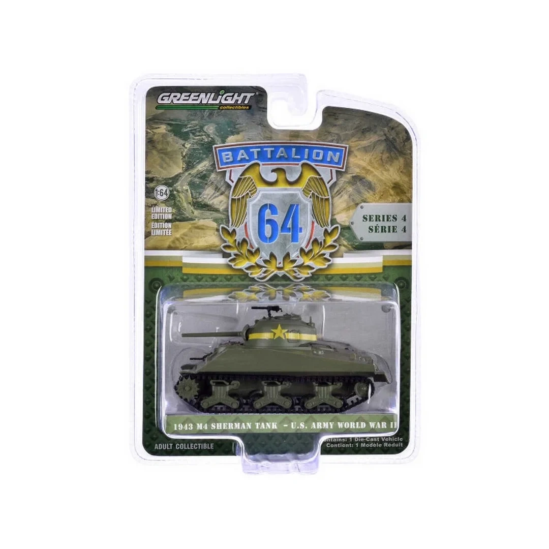 Greenlight 1/64 Battalion 64 Series 4- 1943 M4 Sherman Tank US Army World War II