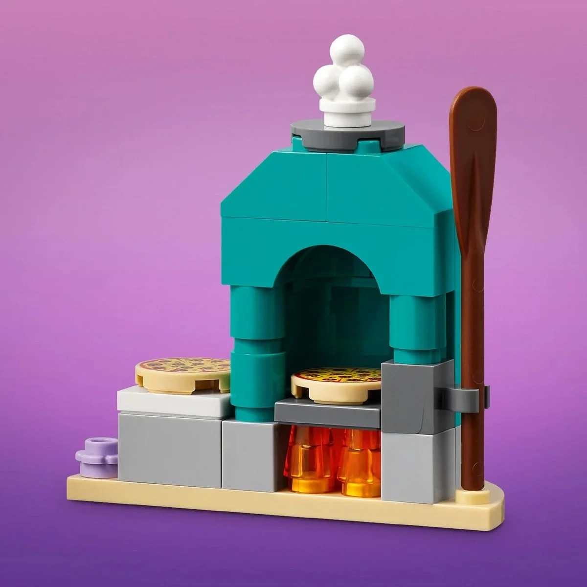 Bu oyun setinde çocukların sipariş alabileceği ve kasayı kullanabileceği bir sipariş penceresi bulunur, ayrı oturma alanı ise restoran oyunlarına zemin hazırlar. Oyuncak pizza fırınıyla bu set bir sürü esnek eğlence sunar, çocuklar pizzacılarını istedikleri gibi düzenleyebilir. Bu renkli set, saatlerce yaratıcı hikaye anlatımına ilham vermek için 2 LEGO Friends karakteri ve bir sürü eğlenceli aksesuarla birlikte gelir. Bu renkli oyun seti, havalı stili sayesinde çocukların odalarında sergilendiğinde harika görünür.