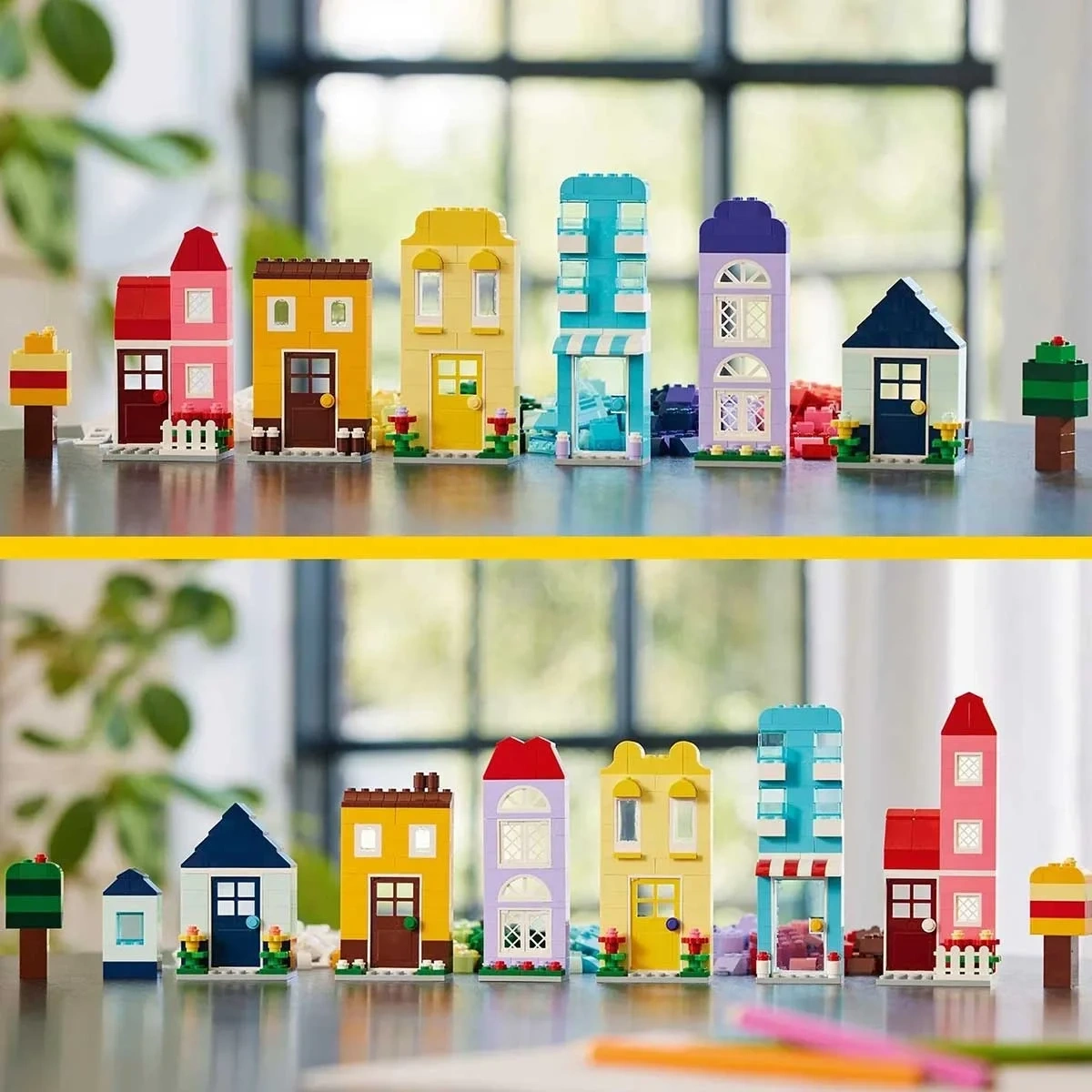LEGO Classic Yaratıcı Evler oyuncak yapım setiyle 6 farklı renkli evi yapabilir, birleştirebilir ve kişiselleştirebilir!