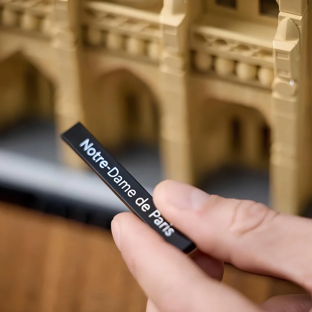 isim levhasını da ekleyerek Notre Dame’ın muhteşem bir sergileme modelini tamamlayın. Eserinizin çatısını çıkararak içindeki