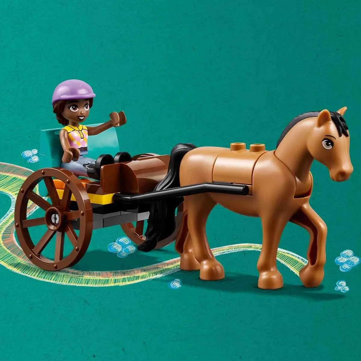 Bu set, LEGO Friends karakterleri Autumn ve Aliya, ayrıca 2 at karakteri ve çok sayıda at bakım aksesuarıyla birlikte gelir.