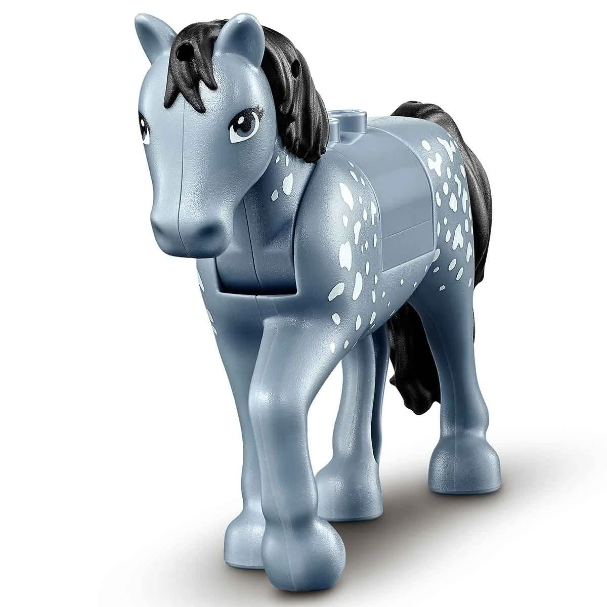 Toplam 7 figür içerir: LEGO Friends Mia ve Savannah, bir mikro bebek, çocuklar için oyuncak köpek ve oyuncak midilli. Ayrıca gerçekçi oyunları daha da geliştirmek için başları menteşeli 2 oyuncak at içerir.