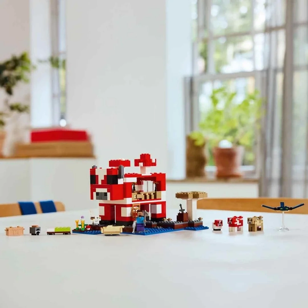 Mantar adasında geçen bu LEGO Minecraft ev yapma oyuncağı, popüler karakter Steve'in yanı sıra kırmızı bir mantar,