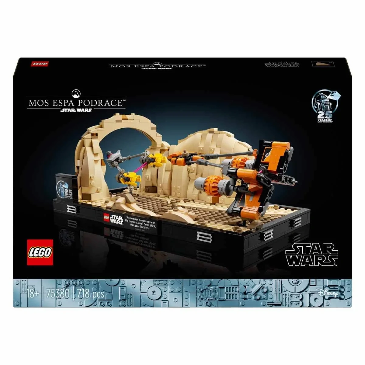 Yetişkinler için LEGO Star Wars Dioraması (75380) inşa edilebilen model setiyle heyecan verici Mos Espa Pod Yarışı’ndan bir kareyi