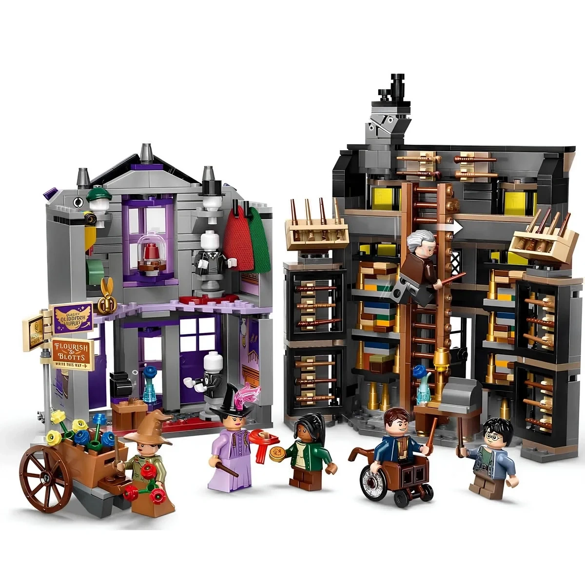 Çocuklar için LEGO Harry Potter Diagon Alley oyuncak yapım seti Ollivanders ve Madam Malkin'in Cübbe Dükkanı’nı açarak