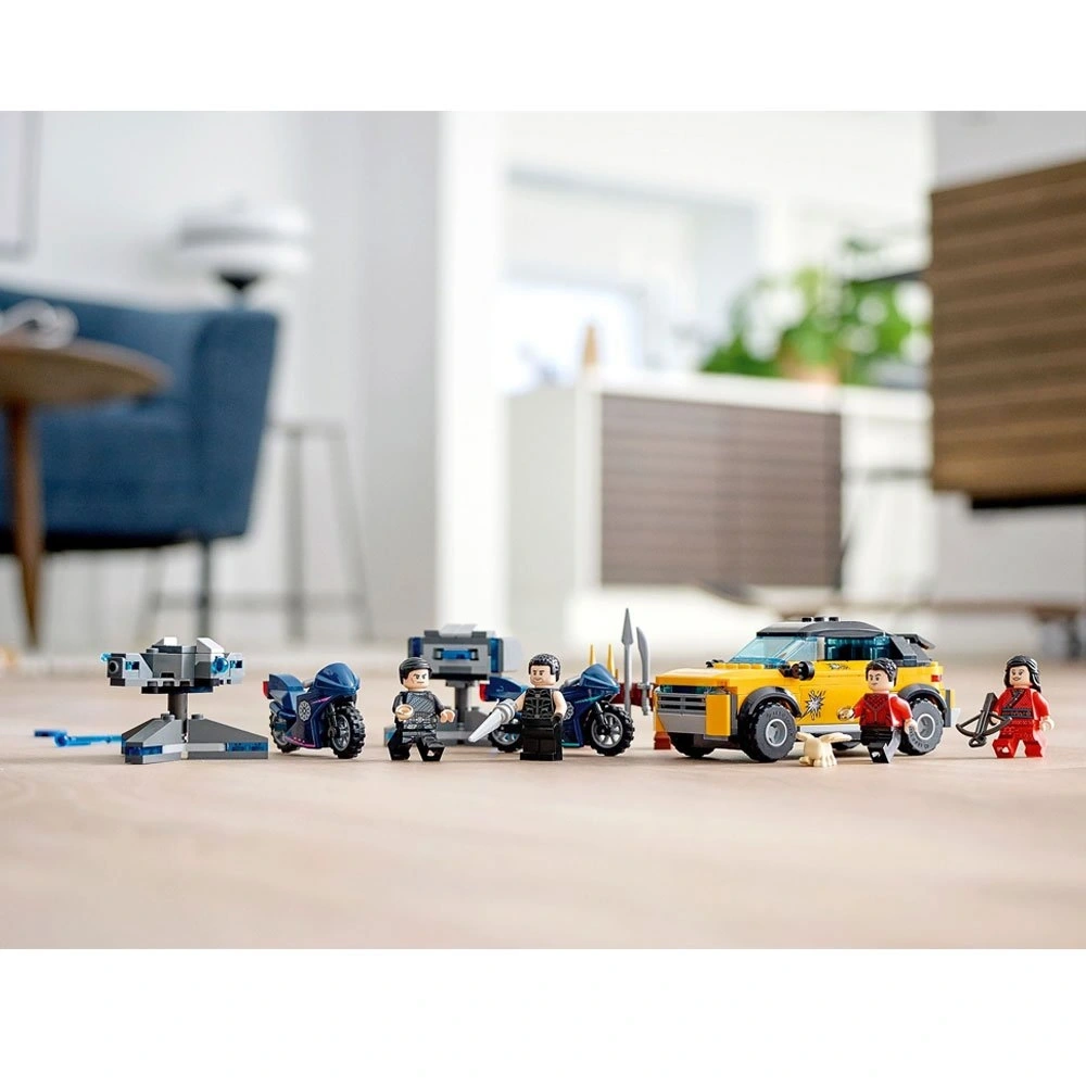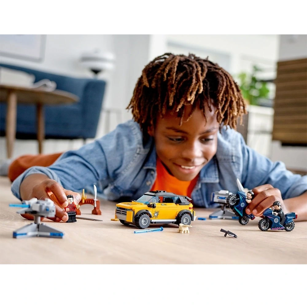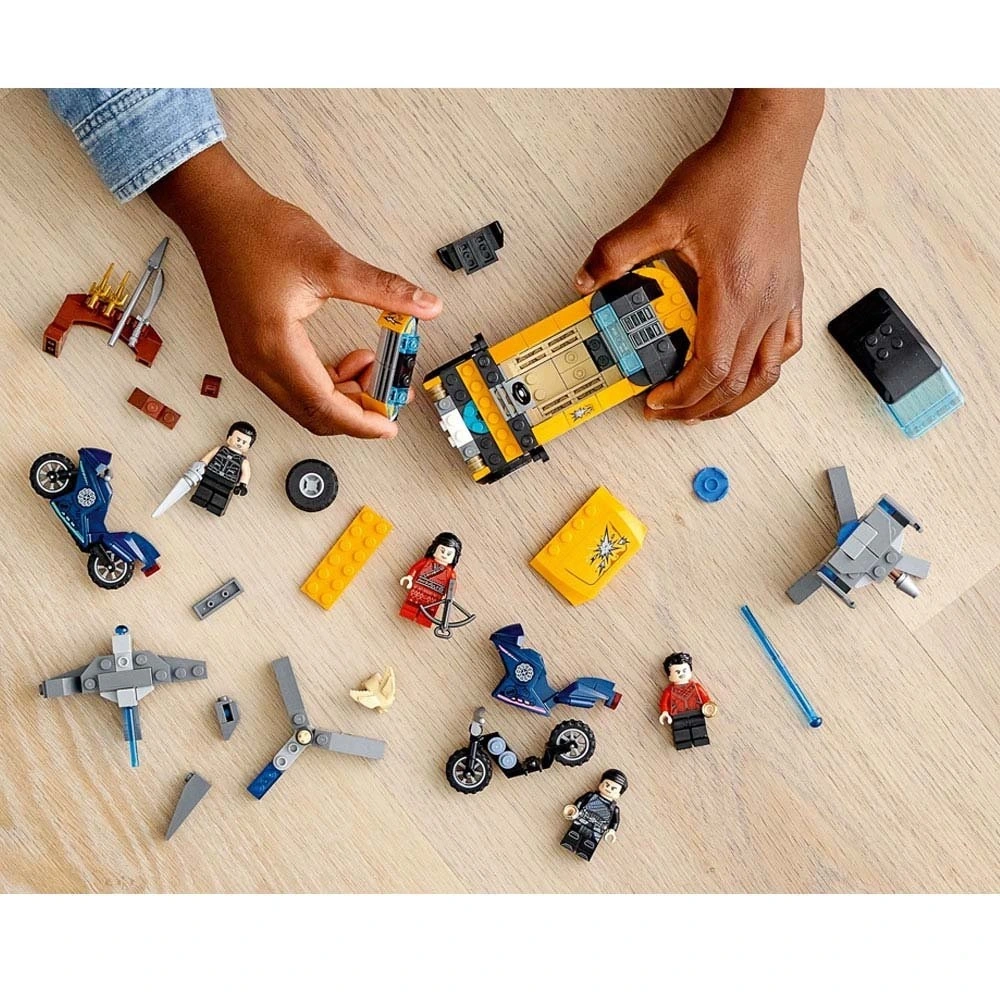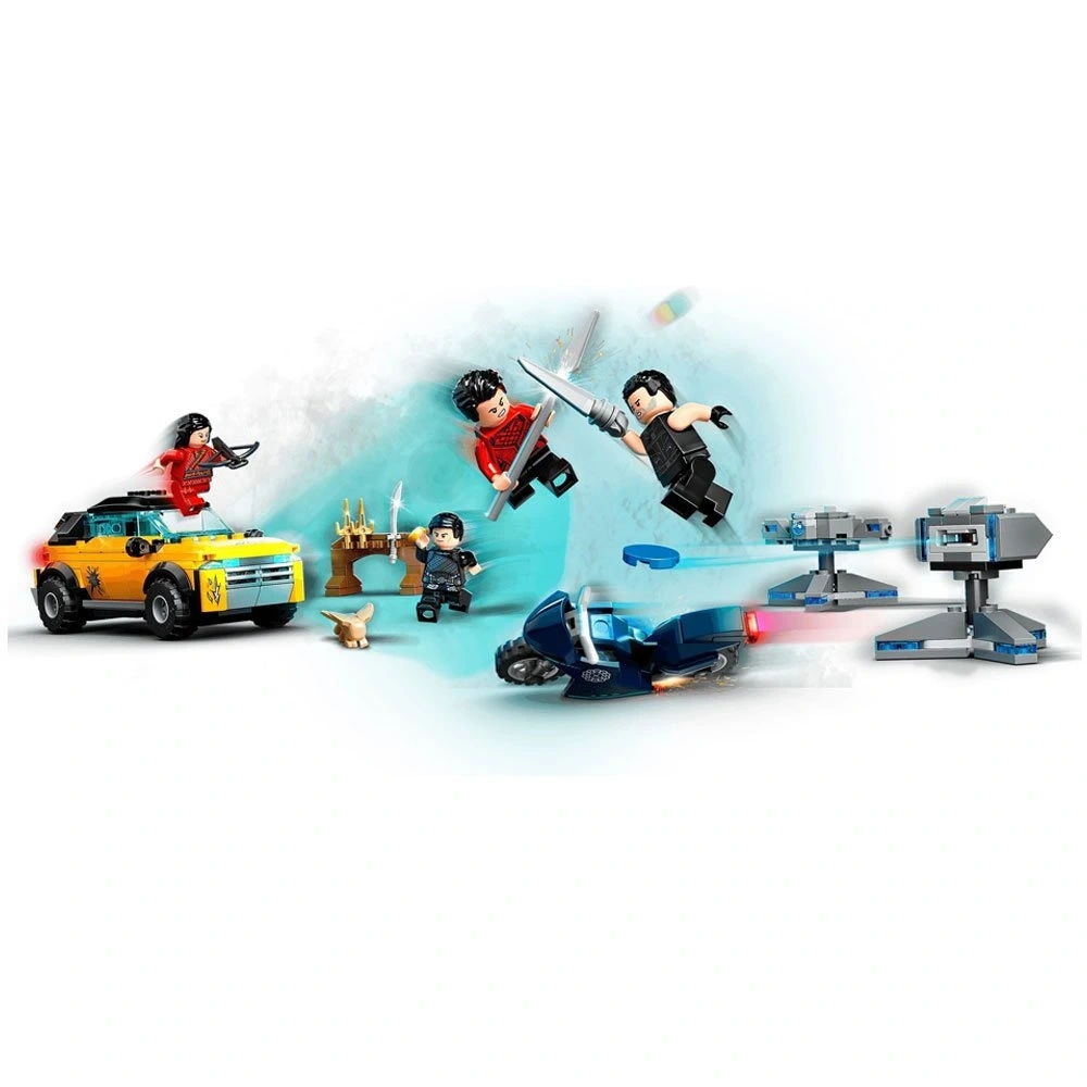 4 minifigür dahildir: Shang-Chi, Katy, Wenwu ve Jilet Yumruk, ayrıca bir Morris figürü, bir SUV, 2 atıcı taret ve 2 motosiklet.