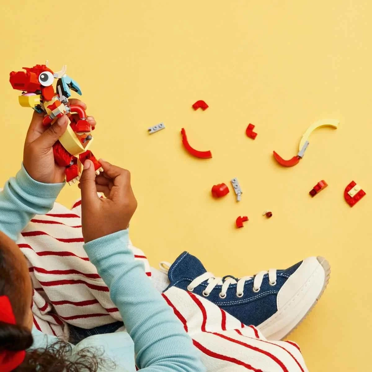 İnanılmaz LEGO Creator Kırmızı Ejderha'yı inşa edin ve sergileyin. Daha da fazla eğlence için model, rengarenk tüyleriyle sevimli bir