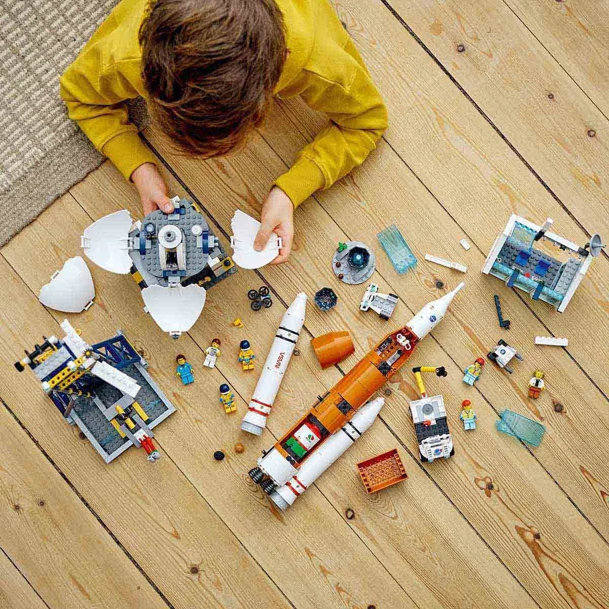 • LEGO City uzay temalı oyun seti; LEGO City Roket Fırlatma Merkezi oyun seti, yaratıcı uzay oyunları için NASA’dan esinlenen çeşitli oyuncaklar içerir.