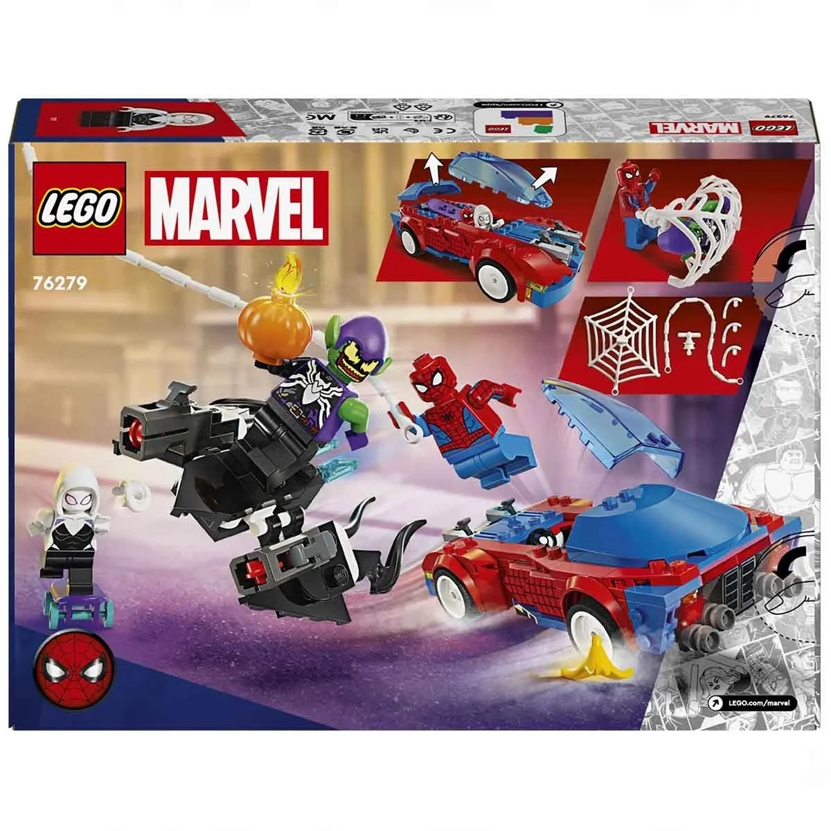 Örümcek Adam ve Ghost-Spider, Spidey’nin Yarış Arabasında gezerken Venom Green Goblin planörüyle süzülerek onlara saldırıyor.