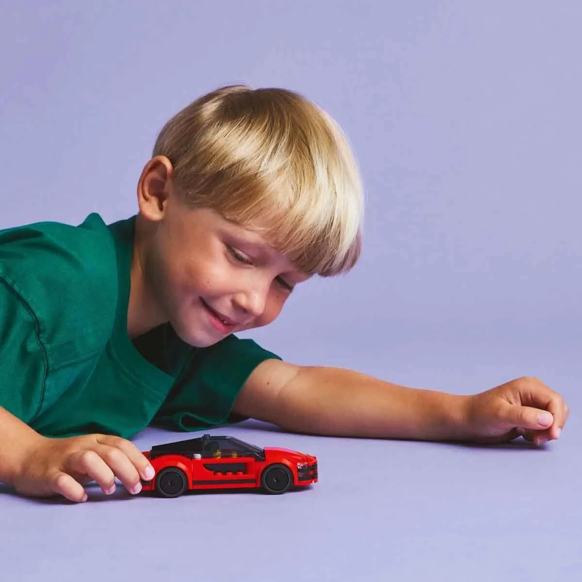 Kutuda ne var? Bu oyuncak araç setinde, sürücü minifigürlü kırmızı bir oyuncak spor araba yapmak için çocukların ihtiyaç