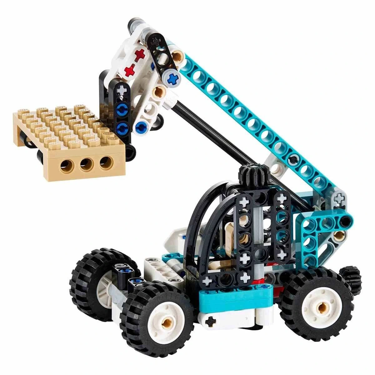 İnşa edilebilen LEGO Technic Teleskopik Yükleyici modeli; direksiyon, kaldırma kolu ve eğilen çatal gibi gerçekçi özelliklere sahiptir.