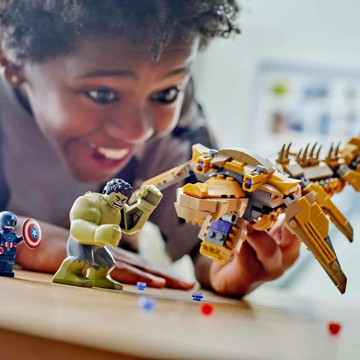 Avengers filminin son savaş sahnesini canlandırıyor. 7 yaş ve üzeri çocuklar için bu inşa edilebilen LEGO Marvel modeli,