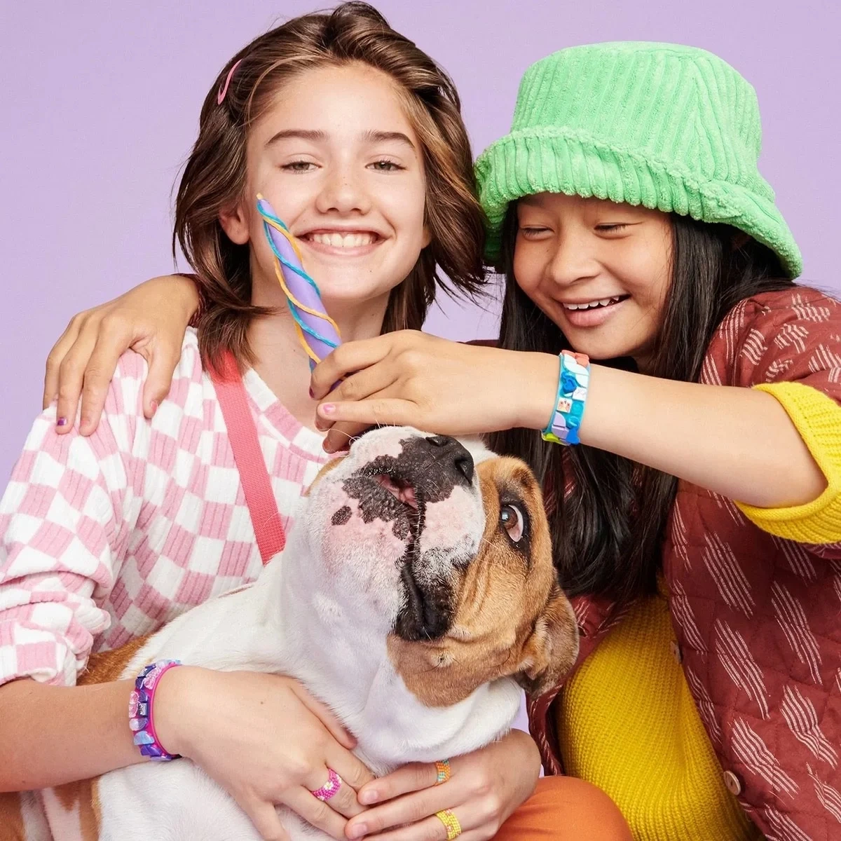 Bileklik paketten çıkar çıkmaz süslemeye hazırdır ve çocuklar tutkularına, kıyafetlerine veya duygularına göre desenler tasarlayabilir.